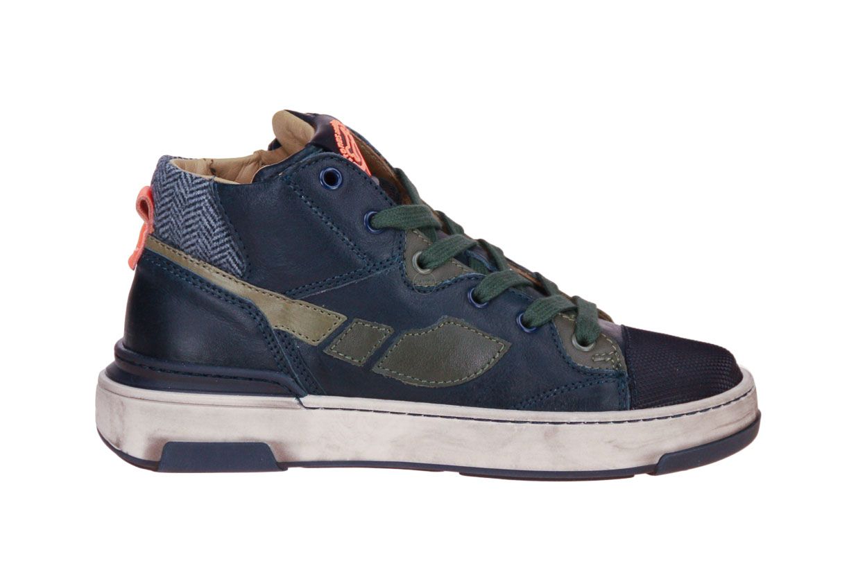 Blauw lederen jongensschoen met kaki accenten van het merk Stones and Bones. De binnenzool is uitneembaar, ideaal voor steunzolen.