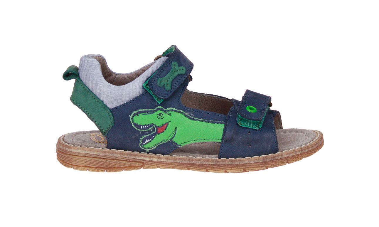 Blauw lederen jongenssandaal met groene accenten van het merk Stones and Bones.