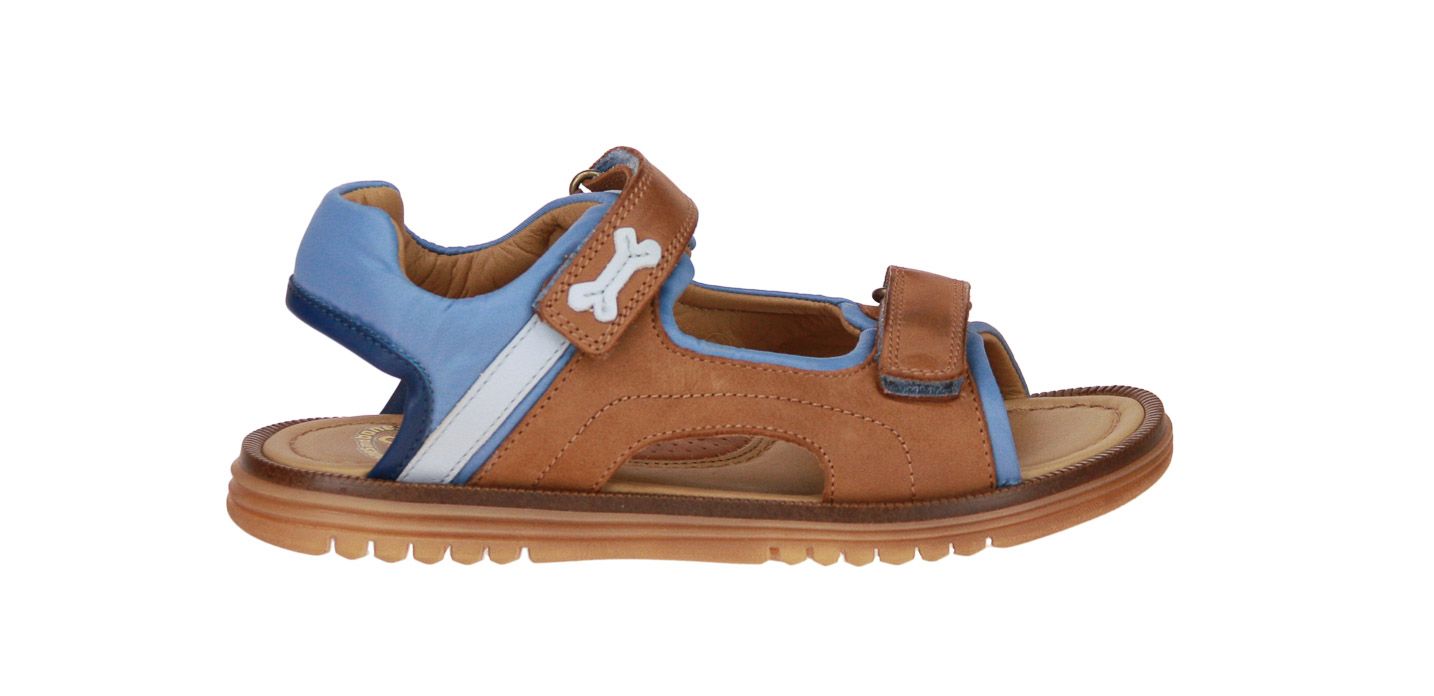 Camel lederen jongenssandaal met blauwe accenten van het merk Stones and Bones.