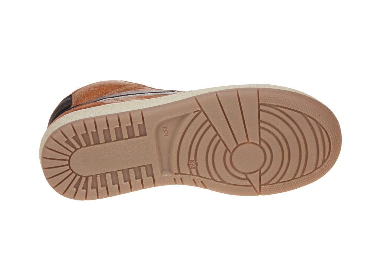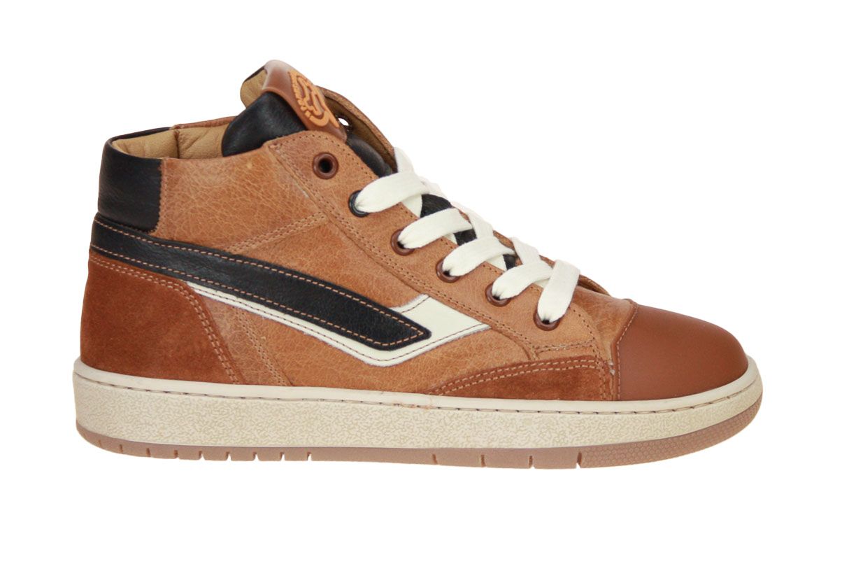 Cognac lederen hoge jongensschoen van het merk Stones and Bones. De binnenzool is uitneembaar, ideaal voor steunzolen.