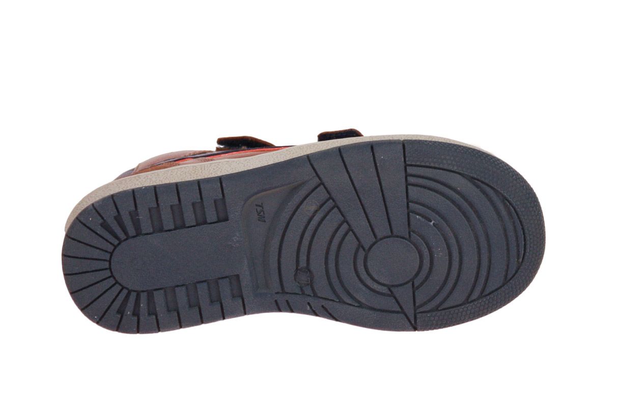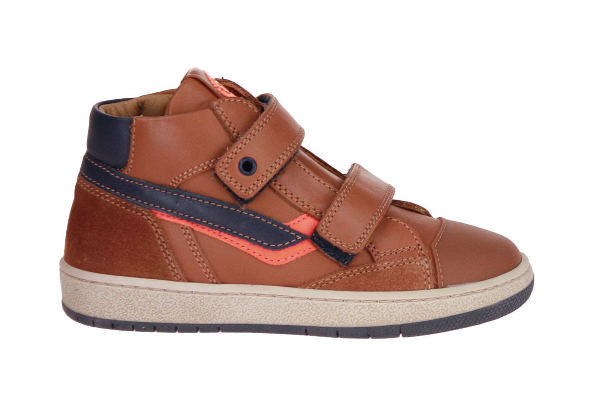 Cognac lederen jongensschoen met blauwe accenten van het merk Stones and Bones. De binnenzool is uitneembaar, ideaal voor steunzolen.
