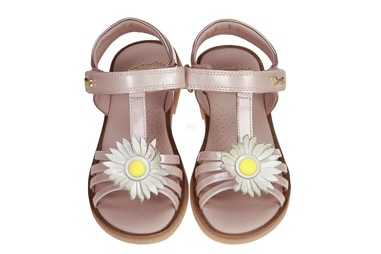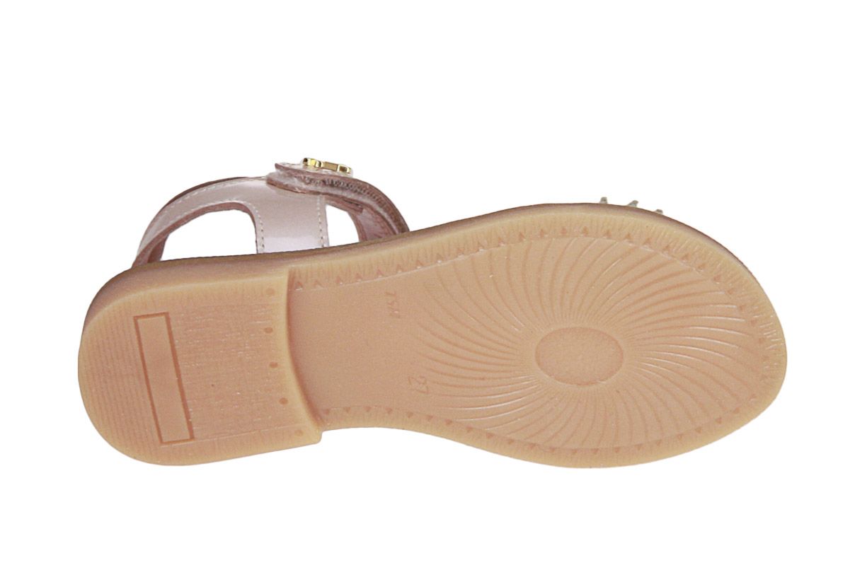 Deze roze laklederen meisjessandaal is van het merk Stones and Bones.