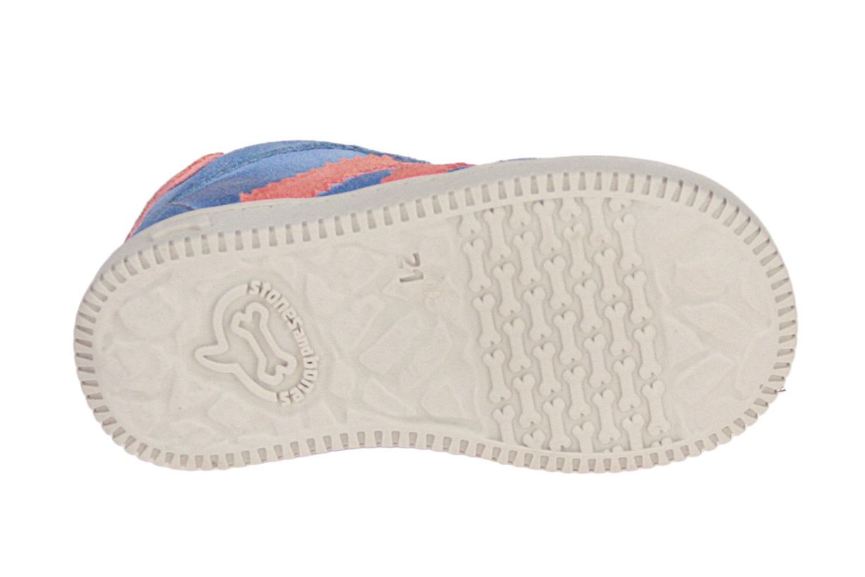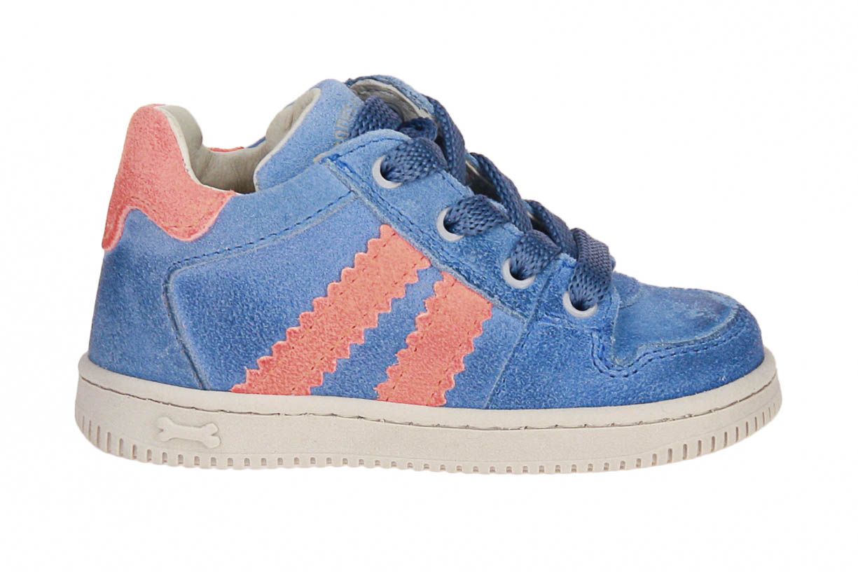 Deze blauw lederen jongensschoen is met oranje accenten van het merk Stones and Bones. De binnenzool is uitneembaar, ideaal voor steunzolen.