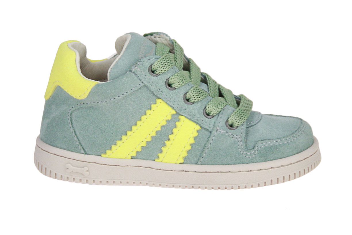 Deze groen suède jongensschoen is van het merk Stones and Bones. De binnenzool is uitneembaar, ideaal voor steunzolen.