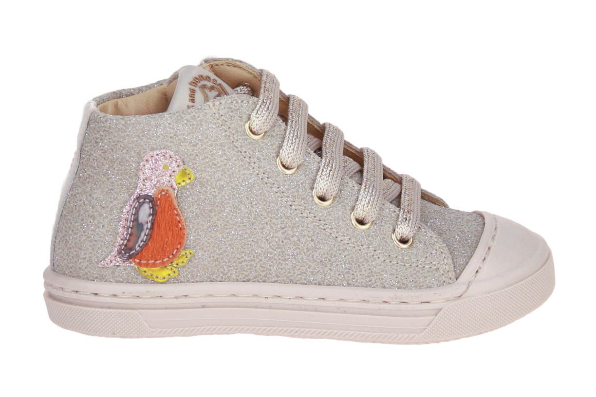 Deze schattige lederen meisjsschoen is van het merk Stones and Bones. Het schoentje is afgewerkt met glitters. Je kan de sneaker gemakkelijk aan- en uittrekken met de ritssluiting.