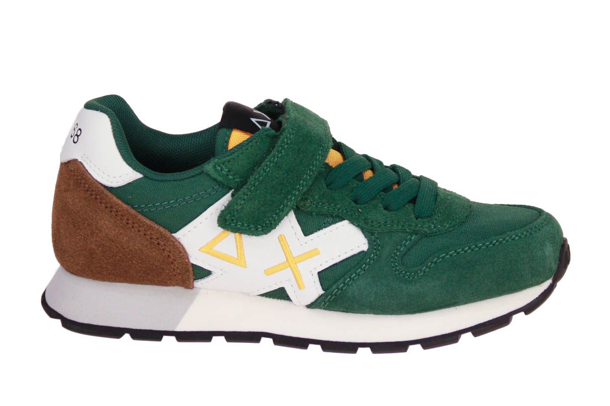Deze groen suède jongensschoen is van het merk SUN68. De binnenzool is uitneembaar, ideaal voor steunzolen.