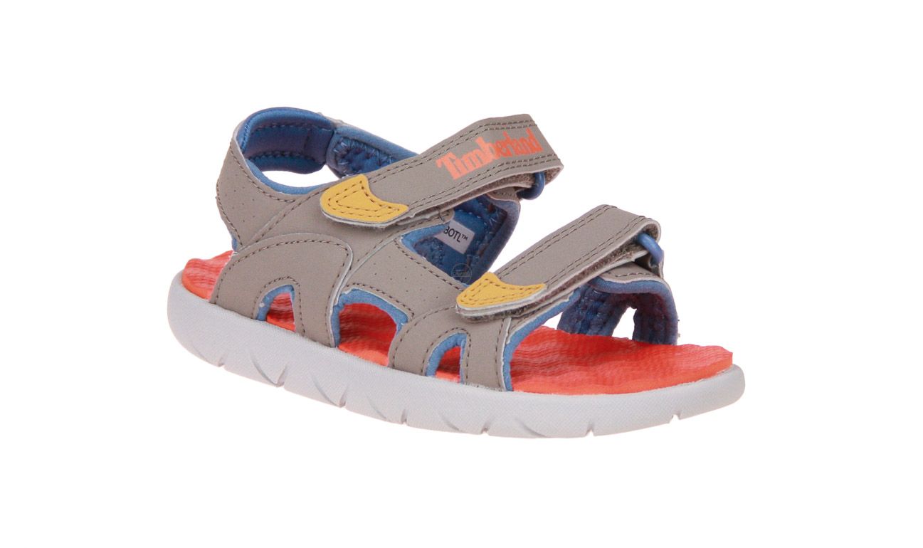 Grijs textielen jongenssandaal van het merk Timberland.
