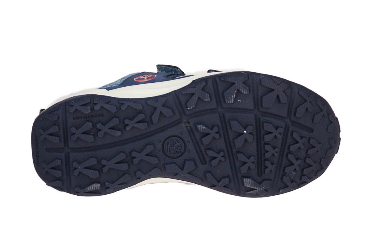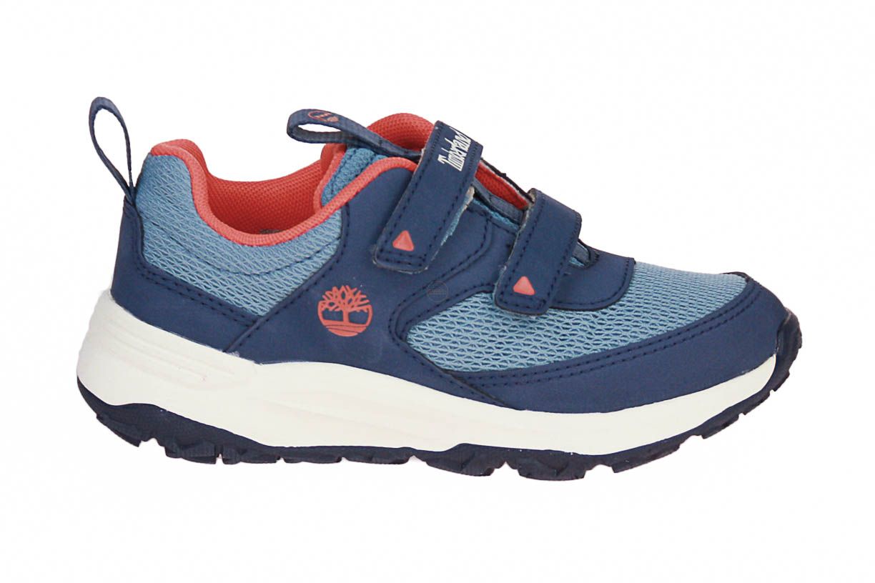 Deze blauw textielen jongensschoen is van het merk Timberland. De binnenzool is uitneembaar, ideaal voor steunzolen.