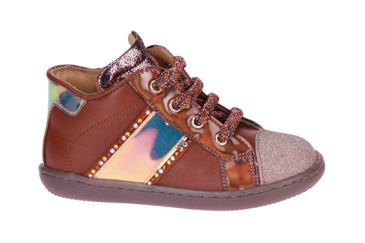 Dit cognac lederen schoentje is van het Italiaanse merk Zecchino d'Oro.