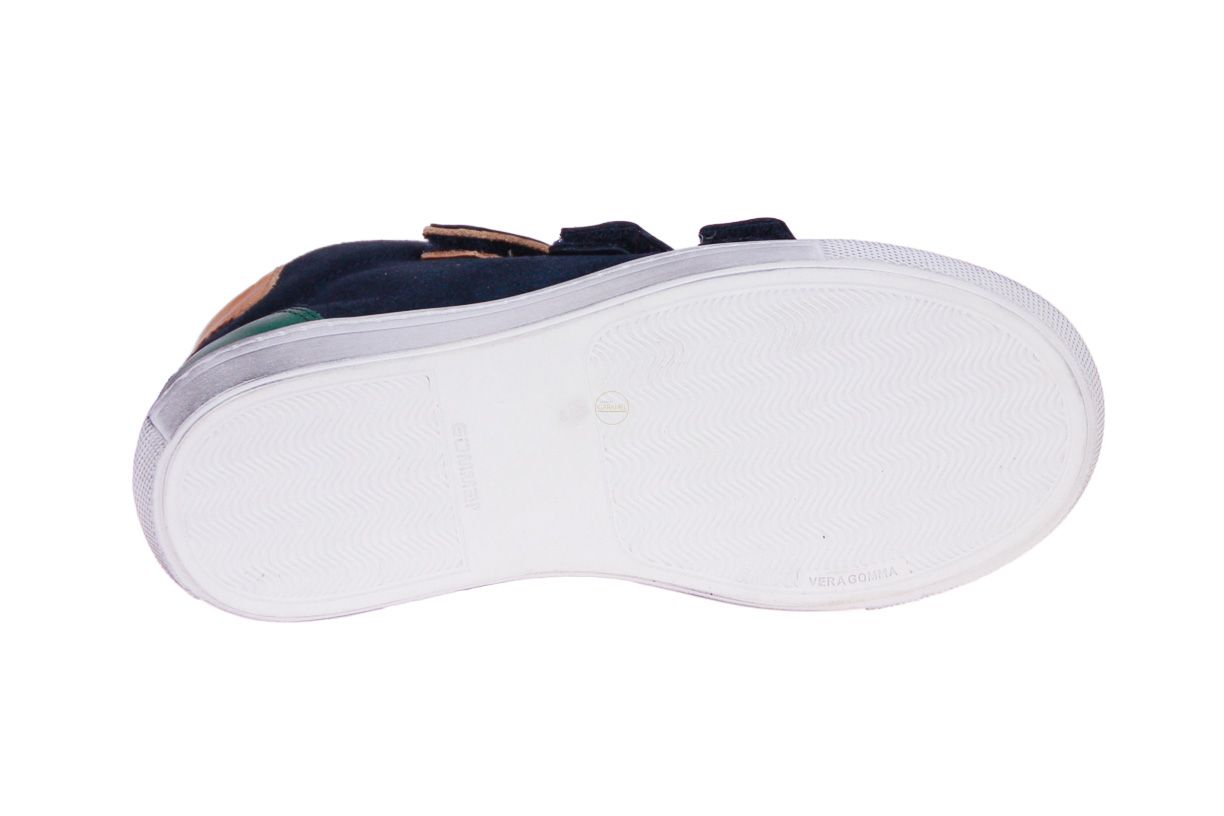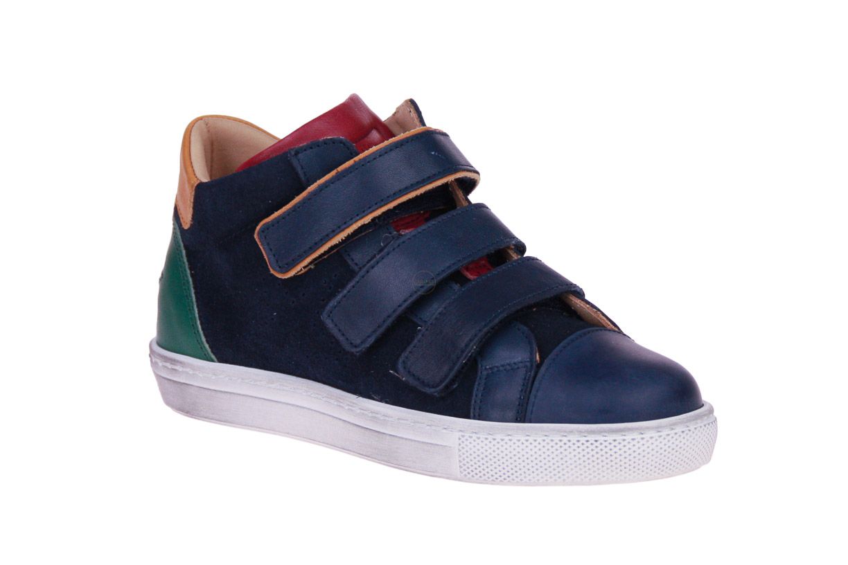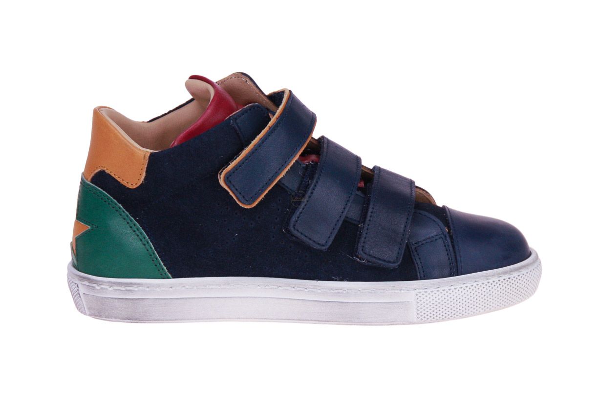 Blauw suède jongensschoen met lederen accenten van het merk Zecchino d'Oro. De binnenzool is uitneembaar, ideaal voor steunzolen.