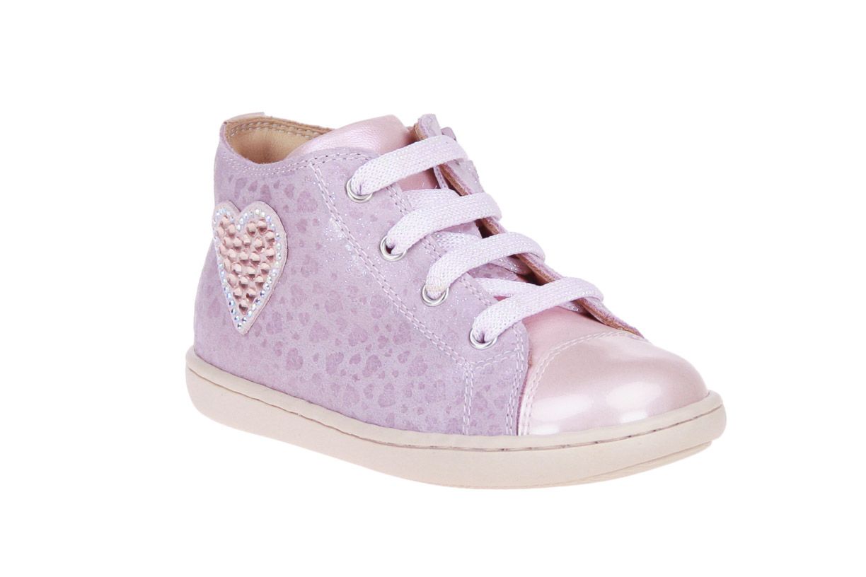 Roze suède meisjesschoen van het merk Zecchino d'Oro.