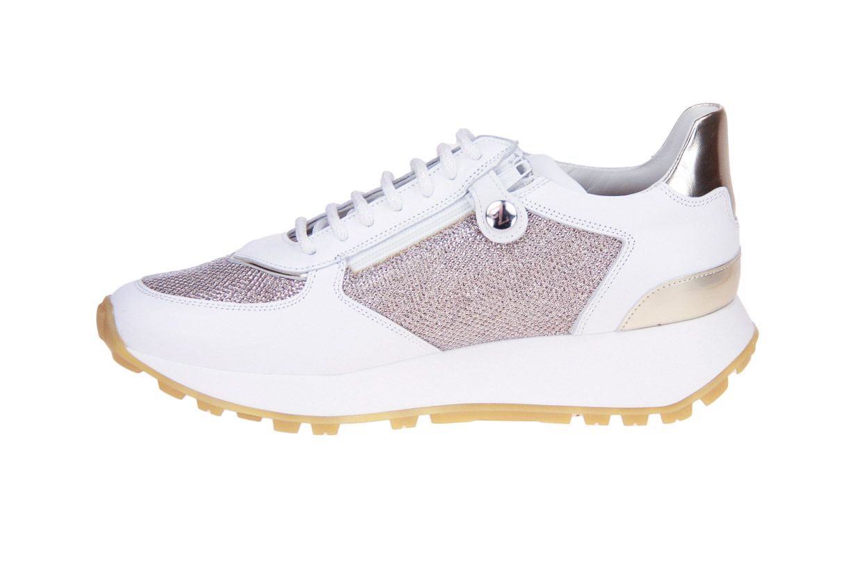 Wit lederen damesschoen met goud accent van het merk Zecchino d'Oro. De binnenzool is uitneembaar, ideaal voor steunzolen.