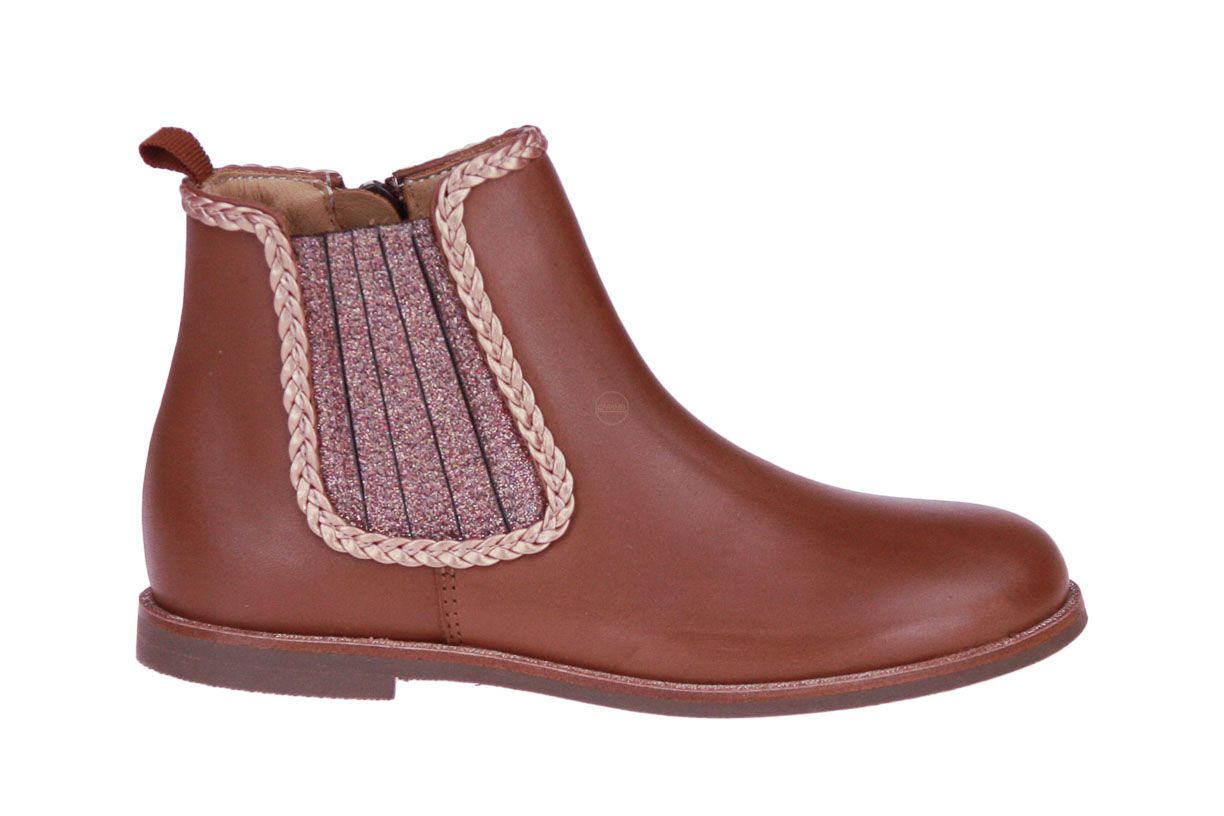 Cognac lederen korte meisjeslaars van het merk Zecchino d'Oro.