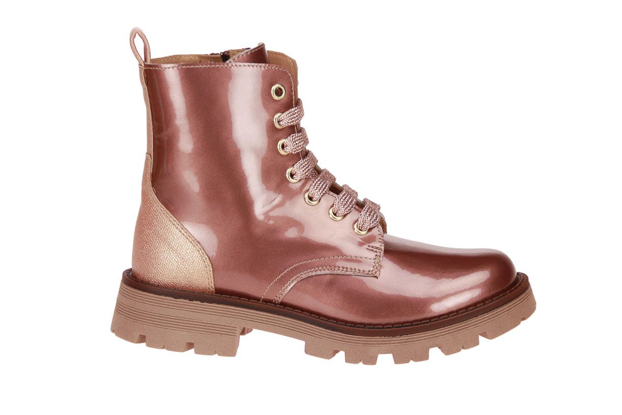 Roze laklederen korte meisjeslaars van het merk Zecchino d'Oro.
