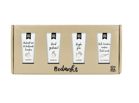 Een mooi gebaar om de vrijwilligers te bedanken voor al hun harde werken. Een middag helpen in het verzorgingshuis of de boodschappen halen voor de buurvouw? Dit pakket is een mooi gebaar om je waardering mee uit te spreken. Een verzorgende handcrème, handzeep, handenscrub en nacht handcrème. met de geur van shea butter om de lieve helpende handen eens flink te verwennen. Heb je geen tijd om iemand een cadeau te geven of woont degene op afstand? Geen probleem. Je kunt deze cadeaubox ook thuis laten bezorgen. Net zo makkelijk!