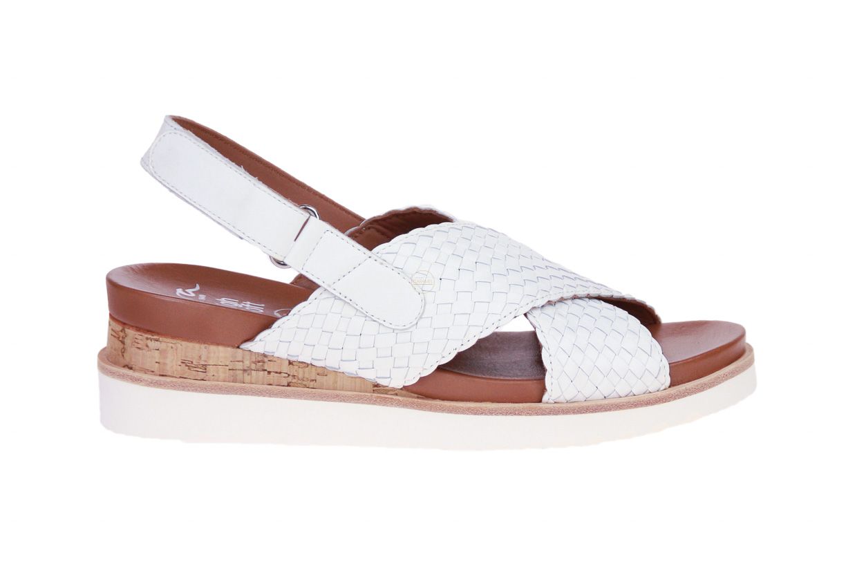 Wit lederen damessandaal van het merk Ara. Dit model is een G-leest, ideaal voor bredere voeten.