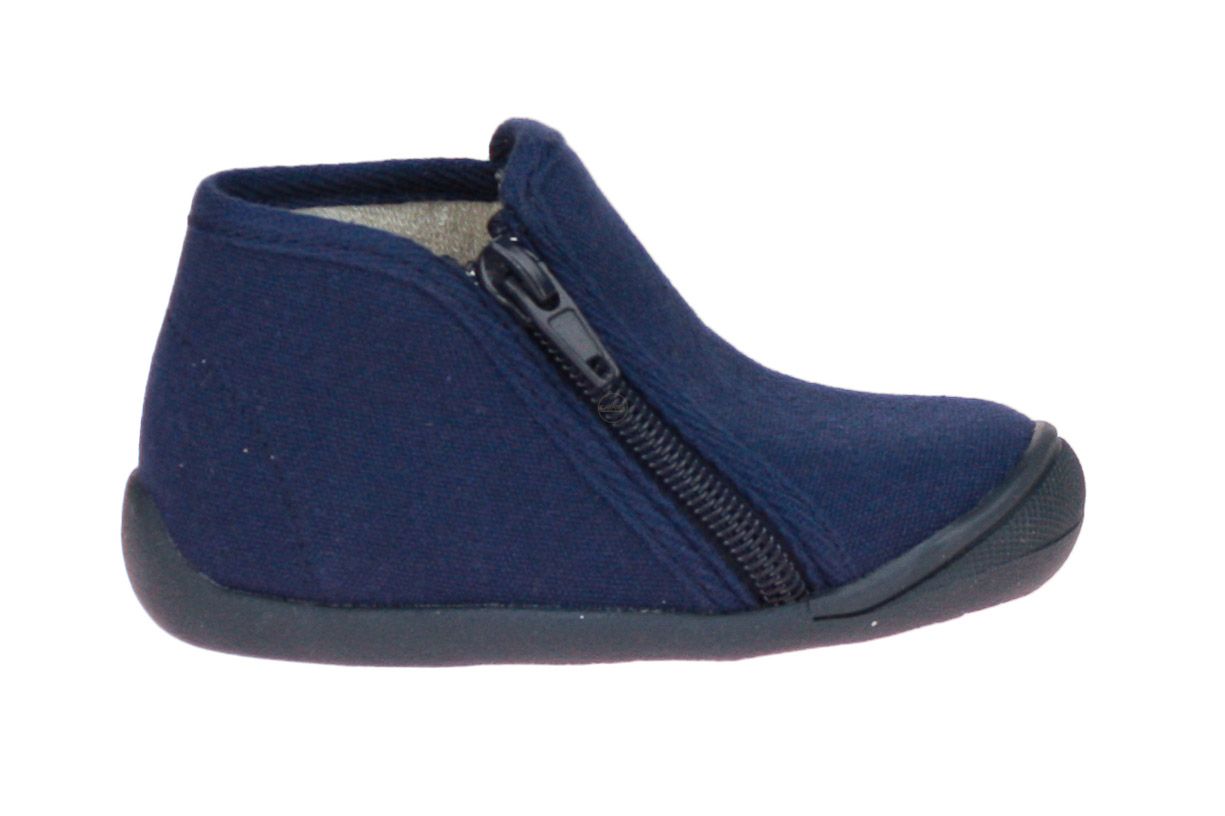 Blauw textielen kinderpantoffel van het merk Bellamy.