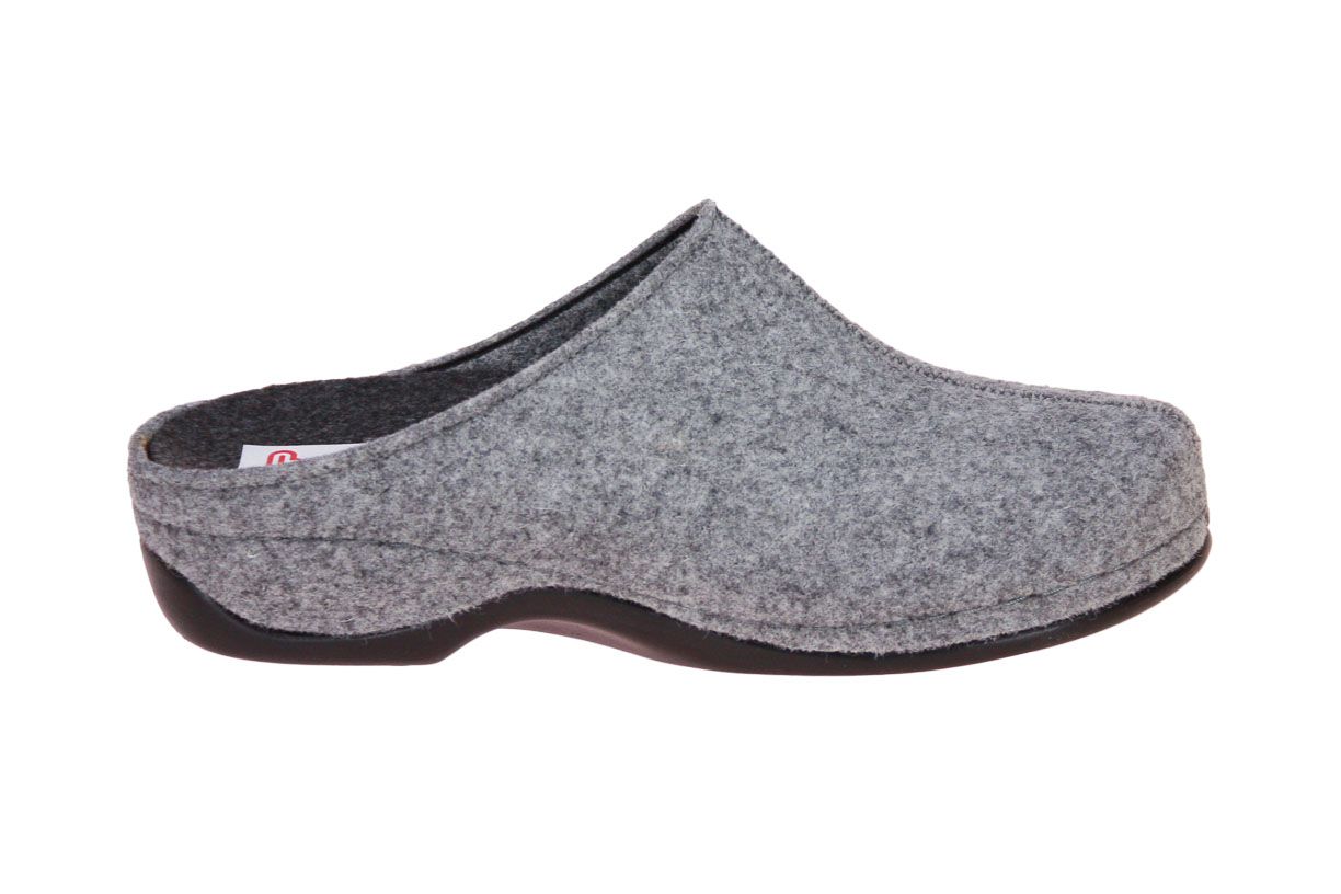 Licht grijs wollen damespantoffel van het merk Berkemann. De binnenzool is uitneembaar, ideaal voor steunzolen.