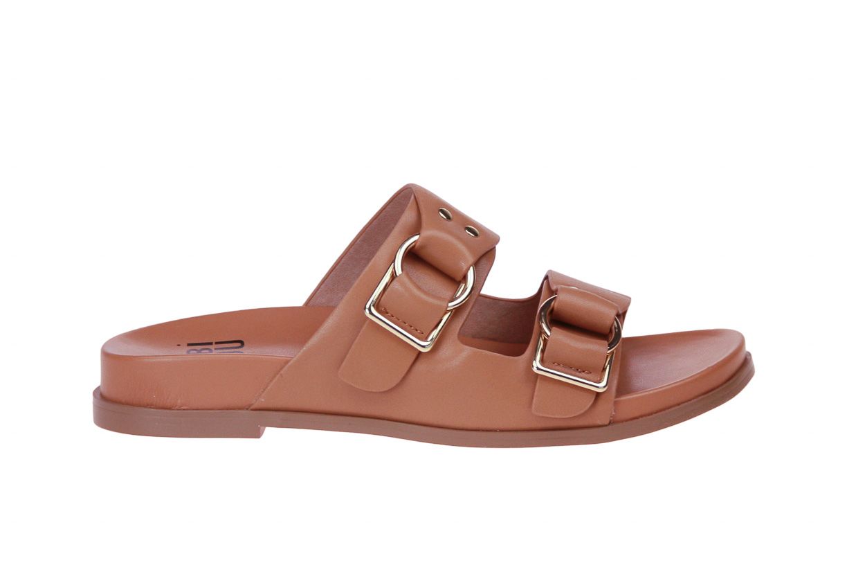 Camel lederen damesslipper van het merk Bibi Lou.