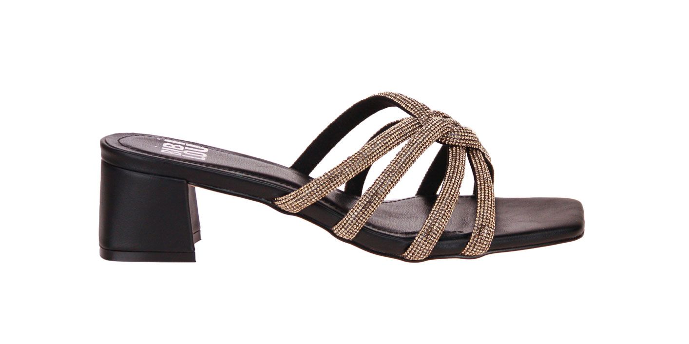 Brons lederen damesslipper met zwarte binnenzool van het merk Bibi Lou.