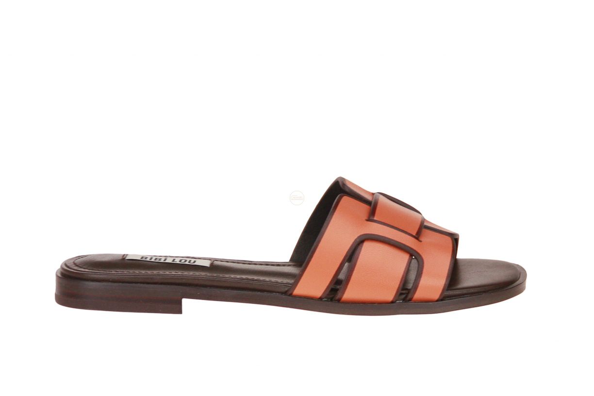 Camel lederen damesslipper van het merk Bibi Lou.