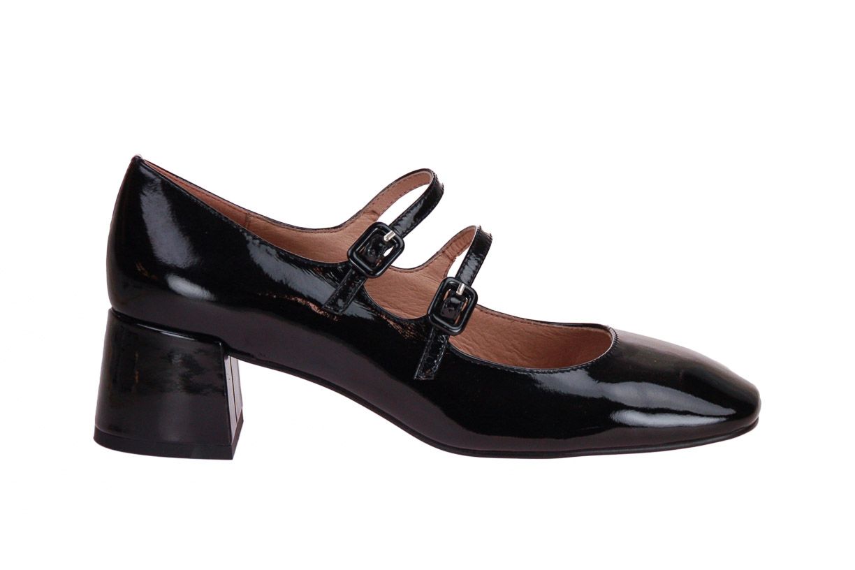 Zwart laklederen damesschoen van het merk Bibi Lou.