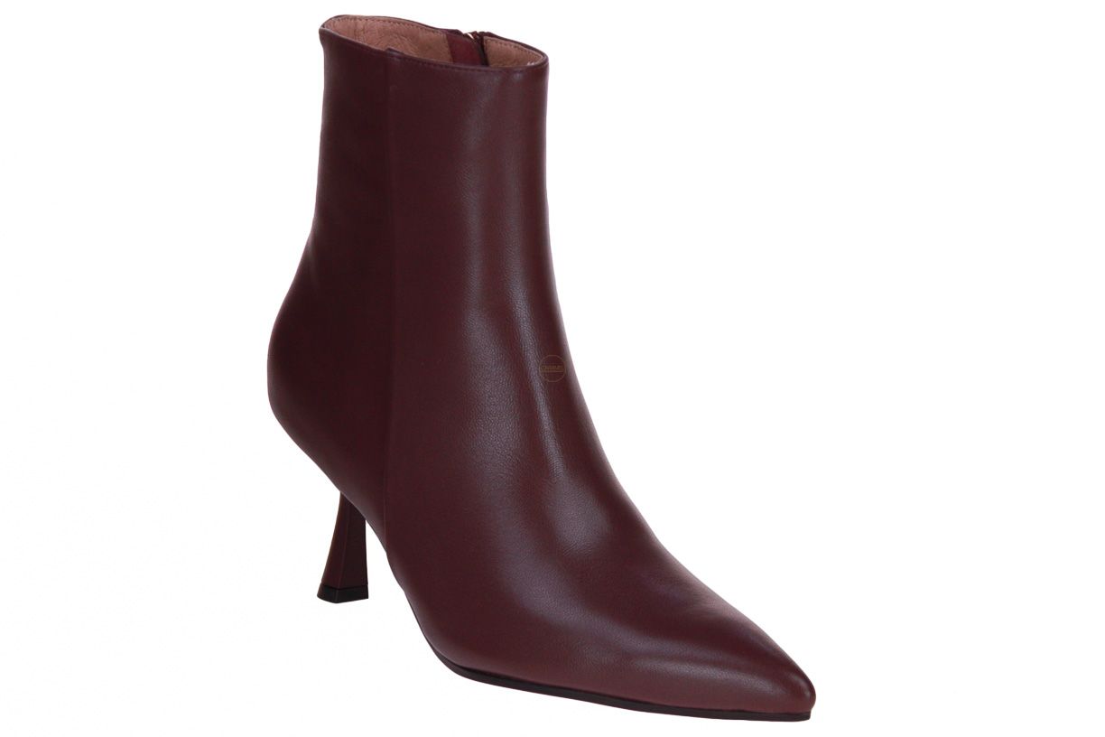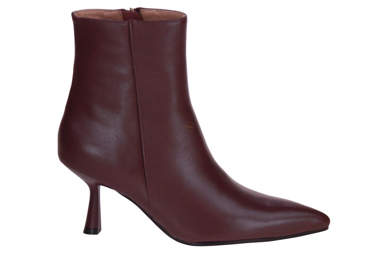 Deze bordo korte lederen dameslaars is van het merk Bibi Lou.