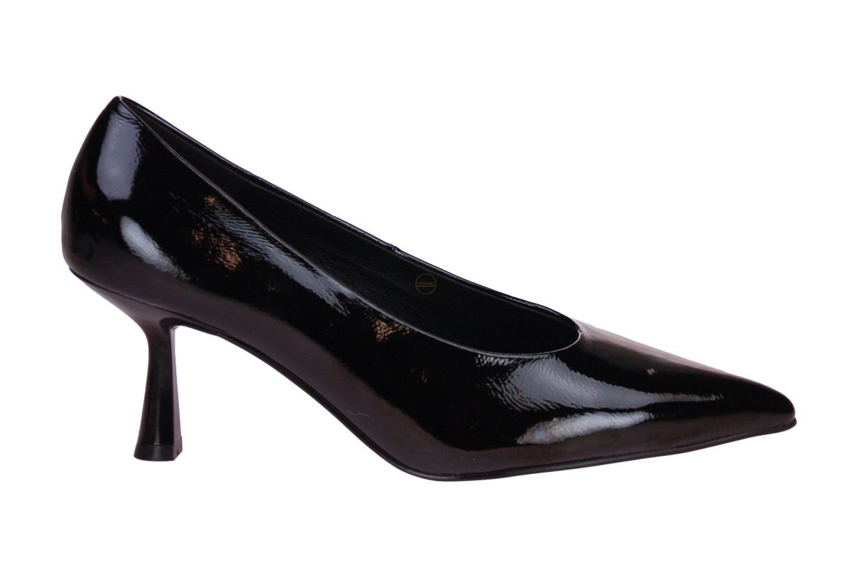 Deze zwart laklederen damesschoen is van het merk Bibi Lou.