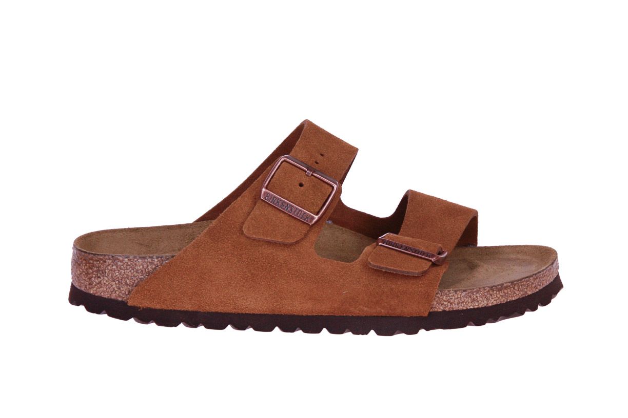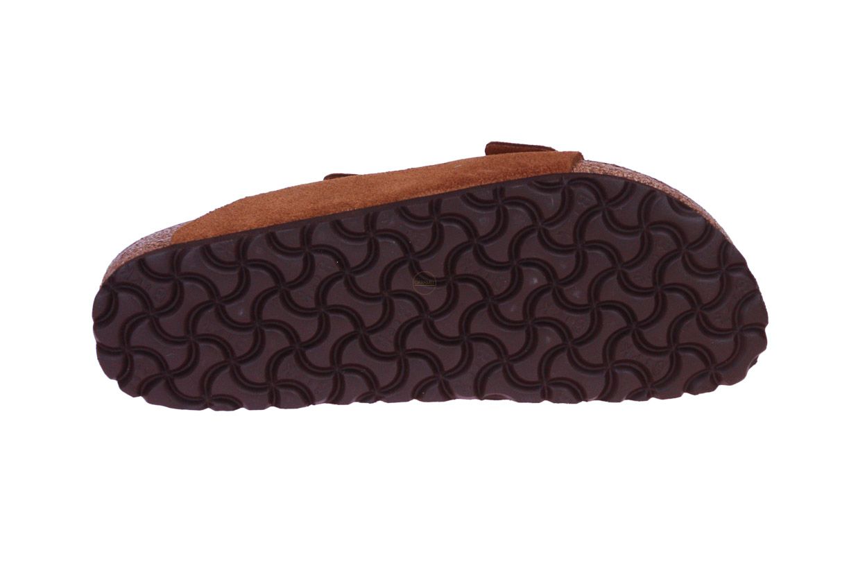 Cognac suède slipper van het merk Birkenstock. Deze slipper heeft een zachtvoetbed.