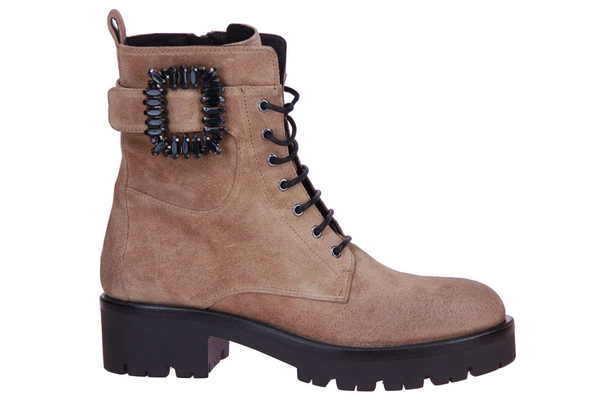 Beige suede veterboot van het merk Bruno Premi.