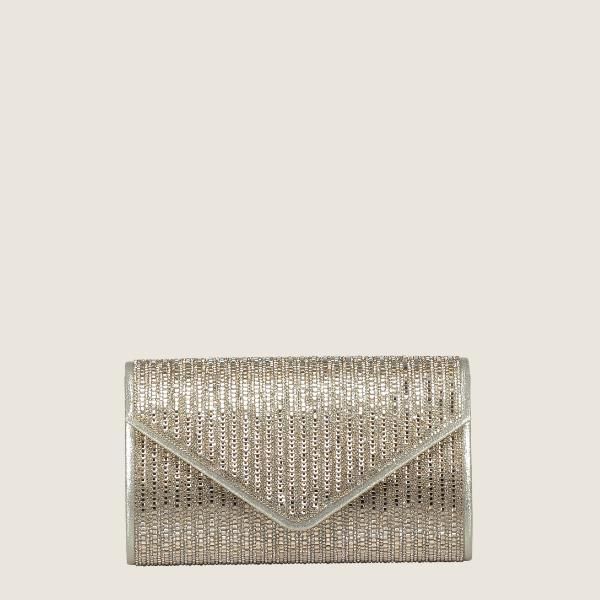 Deze stijlvolle gouden Britt envelop, is compact, maar wel superhandig. Je kunt er al je essentials in kwijt. Deze clutch wordt geleverd met een verstelbare schouderriem, zodat je de tas niet alleen in de hand hoeft te dragen. Deze tas kan ook over de schouder worden gedragen dankzij de meegeleverde extra schouderriem. Aan de binnenkant heeft deze tas een hoofdcompartiment met e´e´n binnenvakje. De tas sluit met een overslag en een drukknop. De metaalkleur is goudkleurig. De afmetingen (breedte / hoogte / diepte) van deze Britt envelop zijn22x14x3