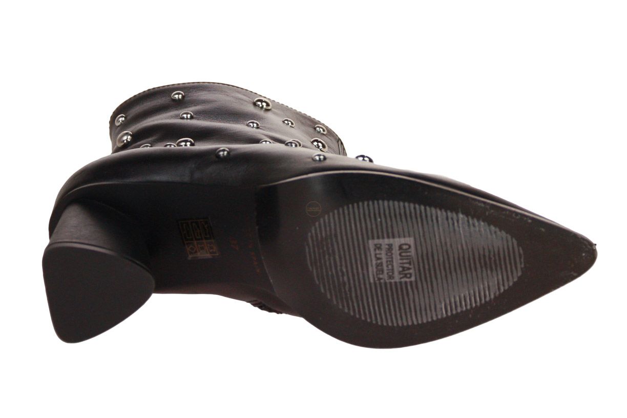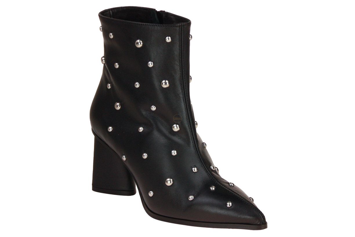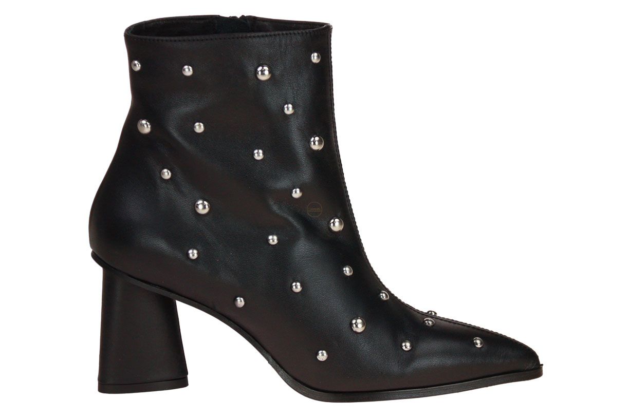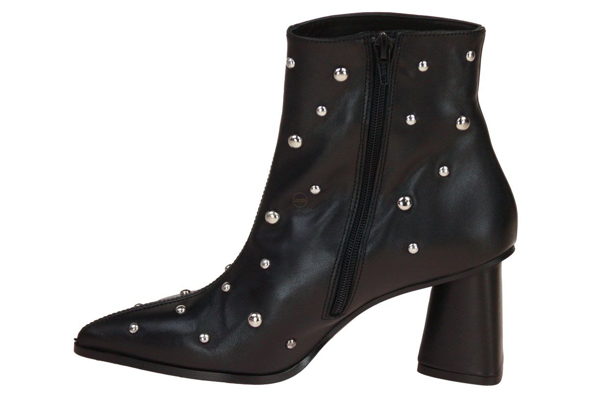 Deze zwart kort lederen dameslaars is van het merk CTWLK. De laars is afgewerkt met studs.