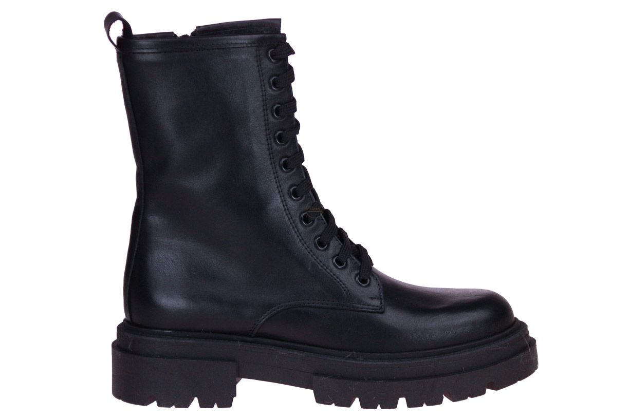 Zwart lederen korte dameslaars van het merk Debutto Donna.