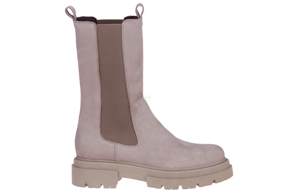 Taupe suède korte dameslaars van het Italiaanse merk Debutto Donna.
