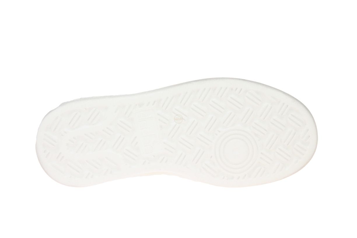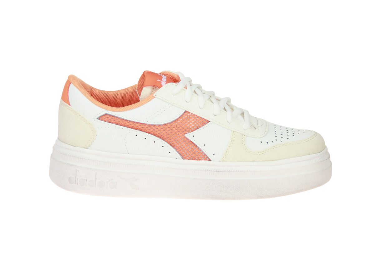 Wit lederen damessneaker met oranje accenten van het merk Diadora.