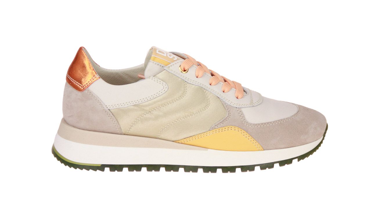 Goud textielen damesschoen van het merk DL Sport. De binnenzool is uitneembaar, ideaal voor steunzolen.