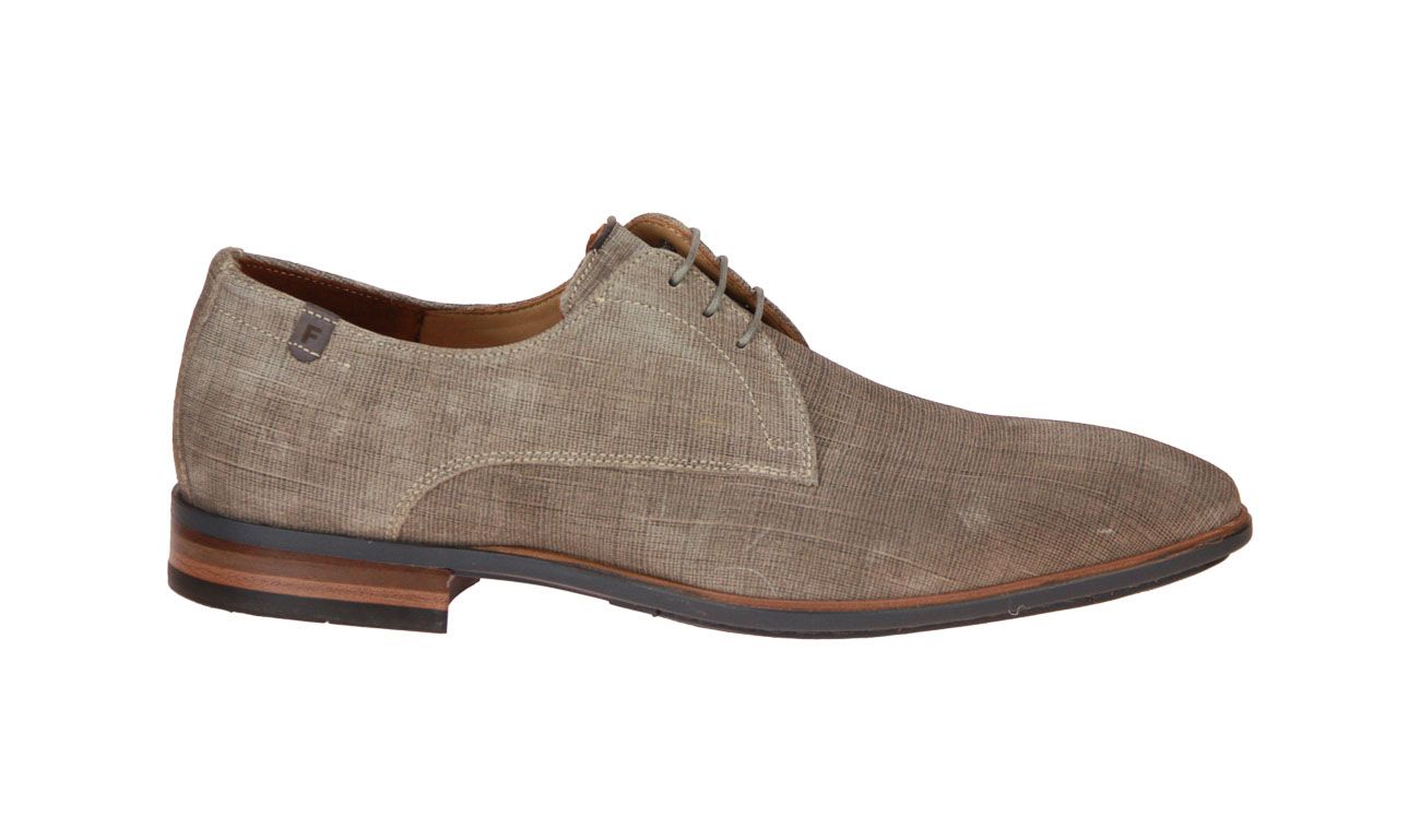 Licht bruin textielen geklede herenschoen van het merk Floris van Bommel. De binnenzool is uitneembaar, ideaal voor steunzolen.