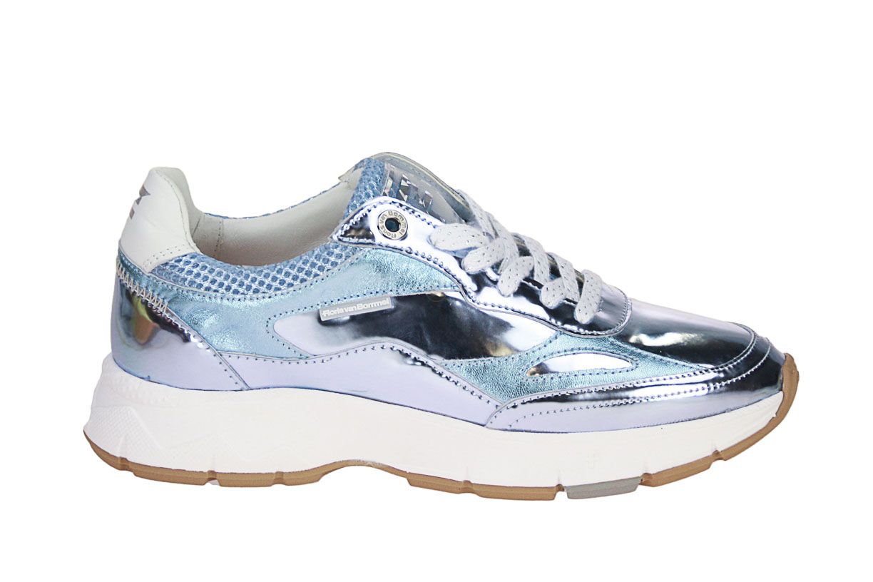 Deze licht blauw metallic lederen damesschoen is van het merk Floris van Bommel. De binnenzool is uitneembaar, ideaal voor steunzolen.
