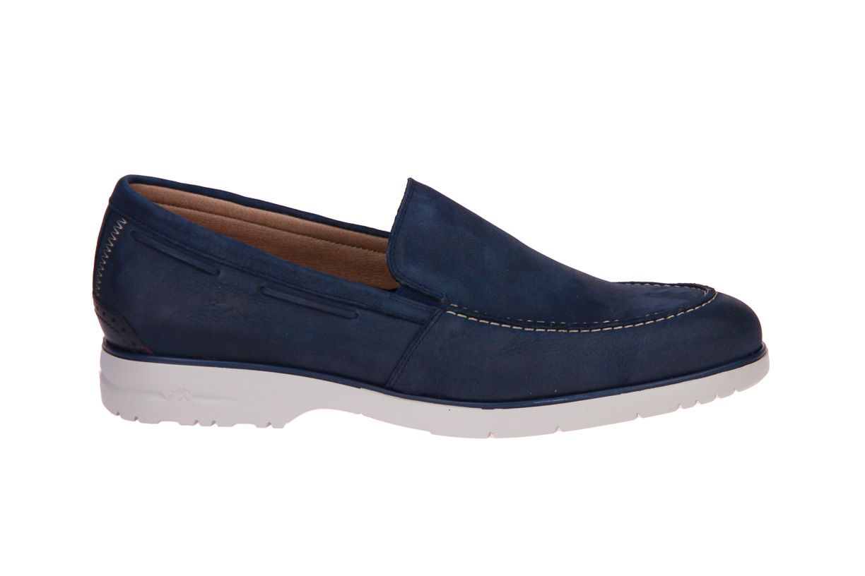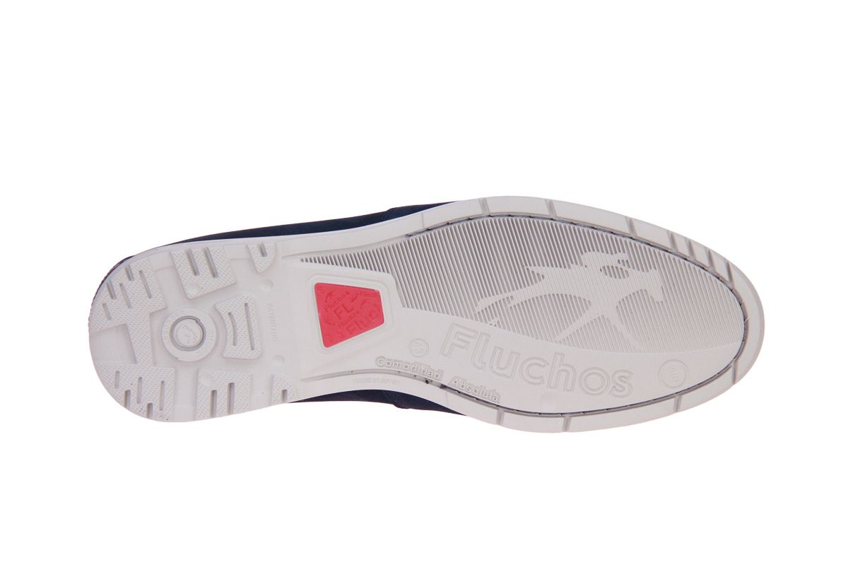 Blauw nubuck herenschoen van het merk Fluchos. De binnenzool is uitneembaar, ideaal voor steunzolen.