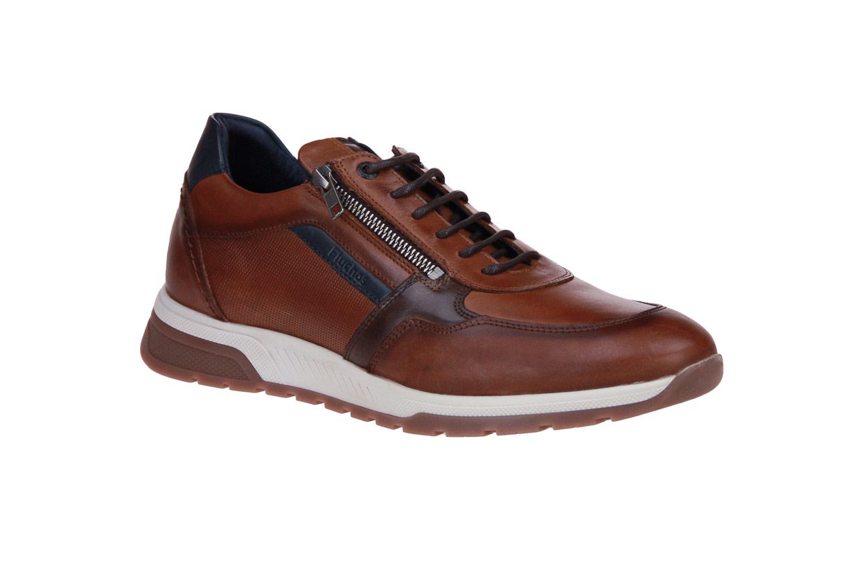 Cognac lederen herenschoen van het merk Fluchos. De binnenzool is uitneembaar, ideaal voor steunzolen.
