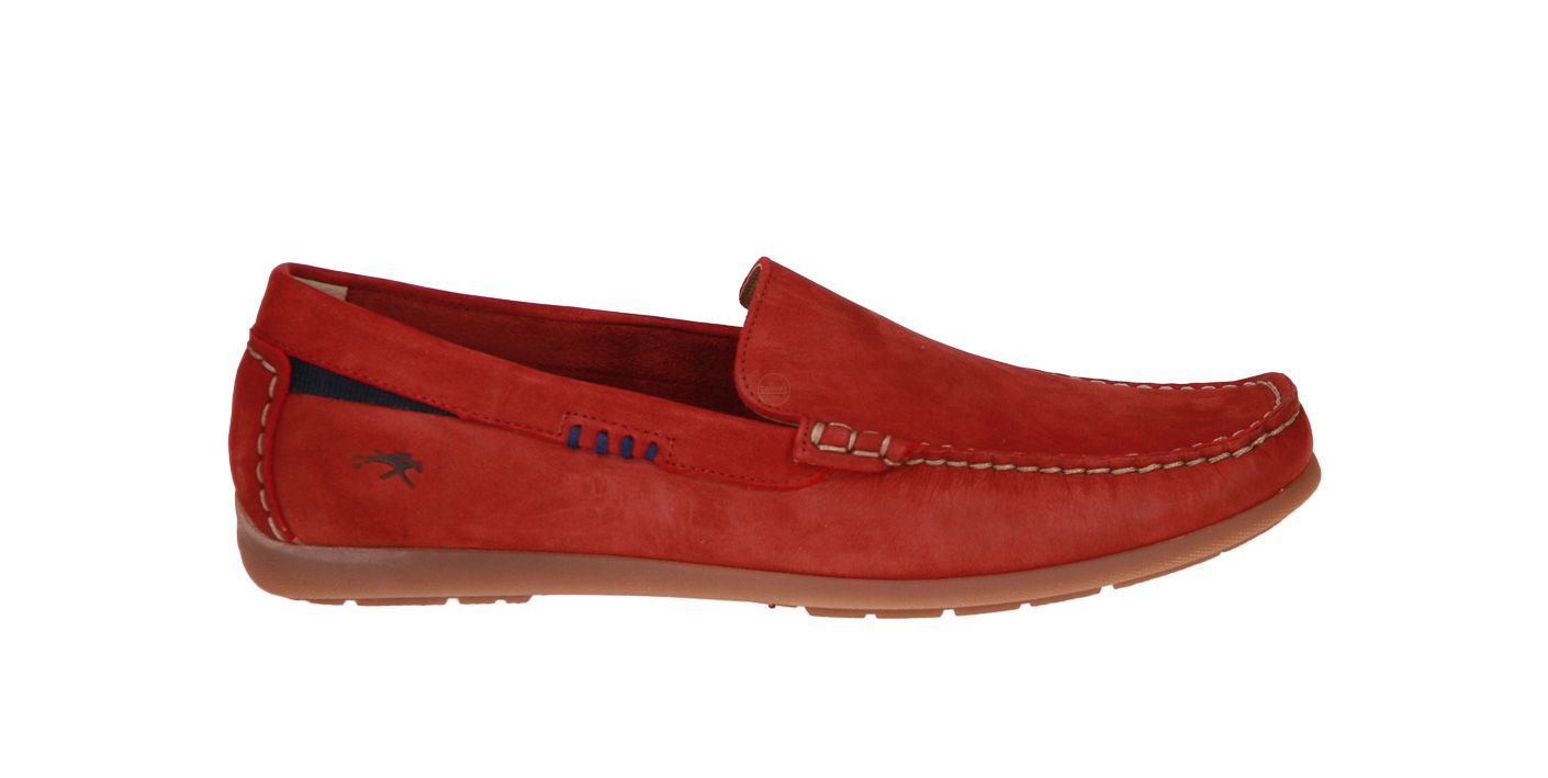 Rood suède herenschoen van het merk Fluchos. De binnenzool is uitneembaar, ideaal voor steunzolen.