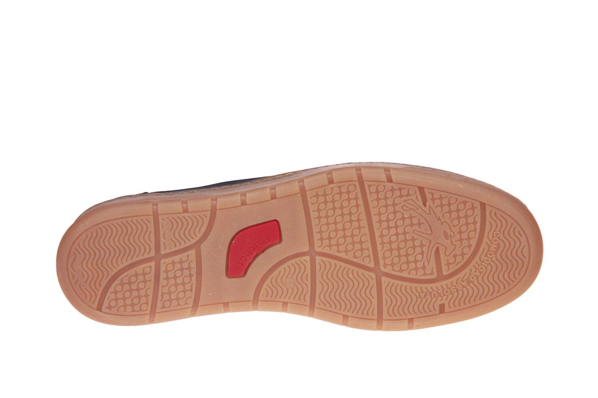 Blauw lederen herenschoen van het merk Fluchos. De binnenzool is uitneembaar, ideaal voor steunzolen.