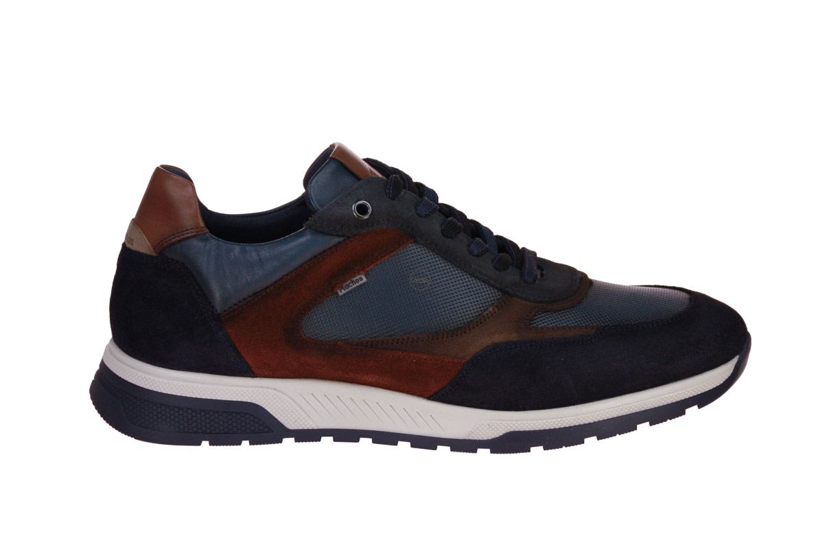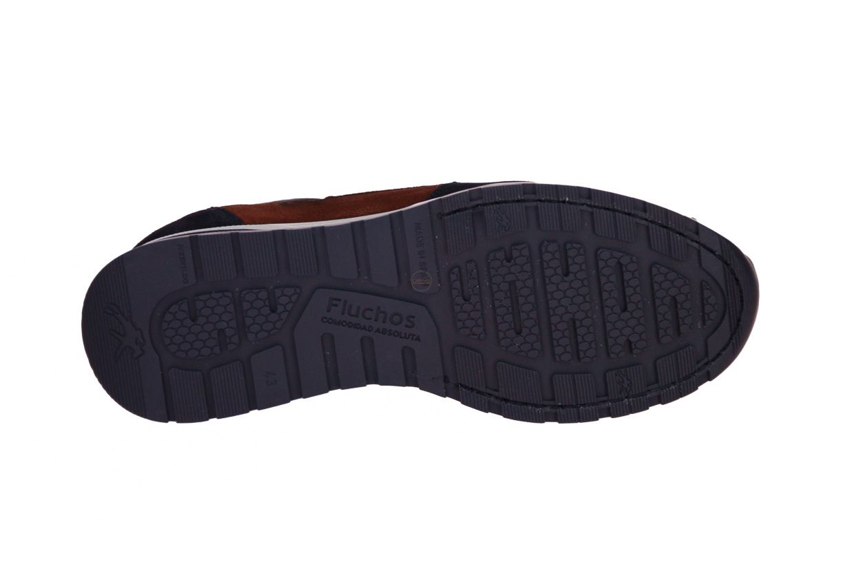 Blauw lederen herenschoen van het merk Fluchos. De binnenzool is uitneembaar, ideaal voor steunzolen.