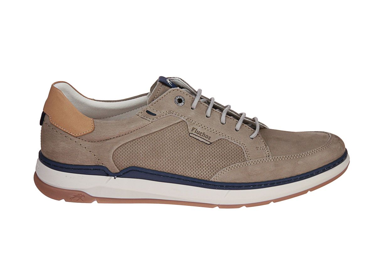 Deze nubuck herenschoen is van het merk Fluchos. De binnenzool is uitneembaar, ideaal voor steunzolen.