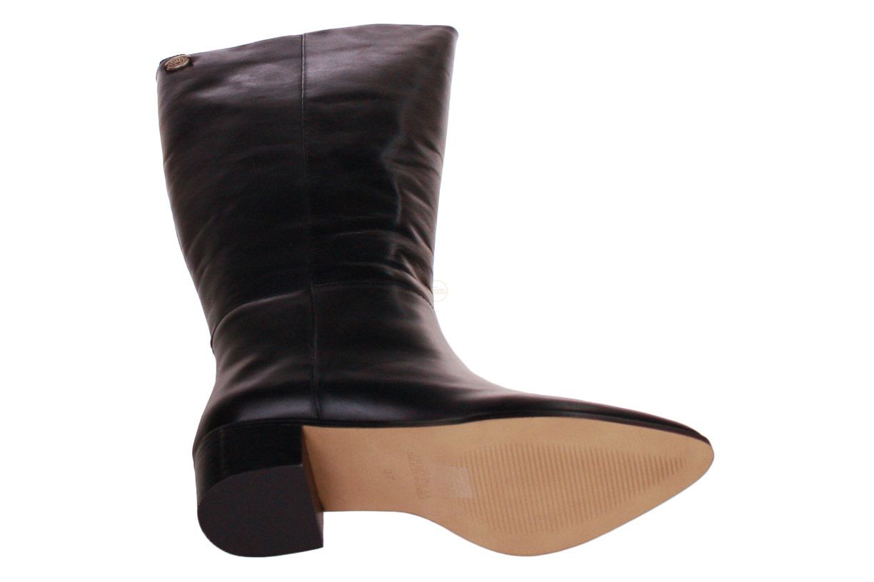 Deze zwart lange lederen dameslaars is van het merk Fred De La Bretoniere.