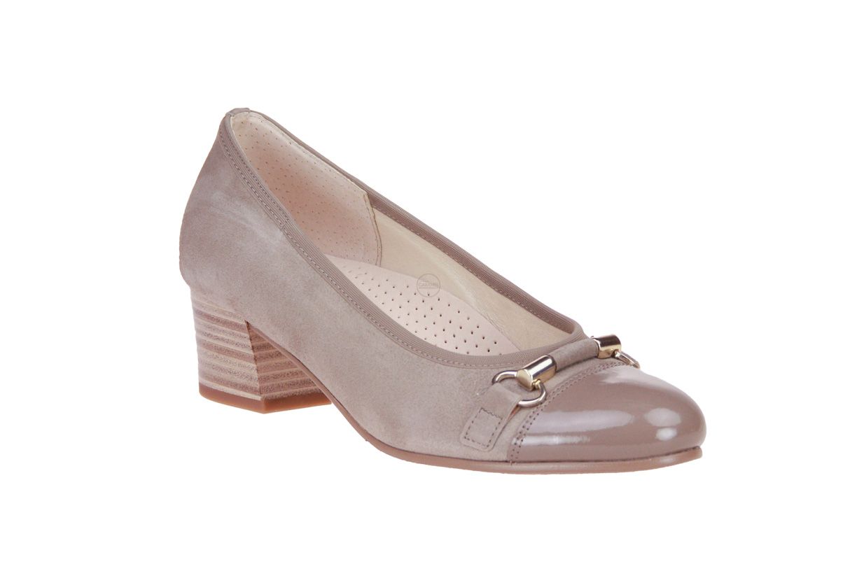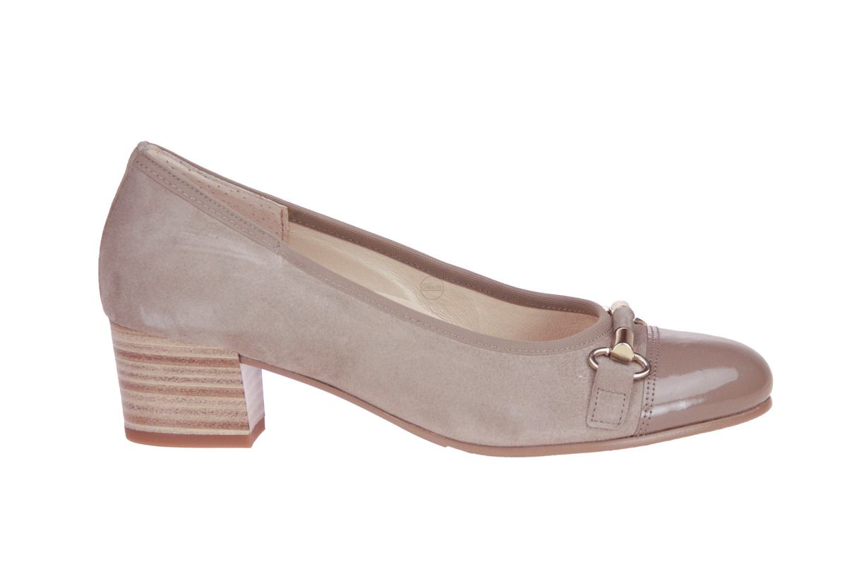 Beige suède damesschoen van het merk Gabor. Dit model heeft een G-leest, ideaal voor bredere voeten.