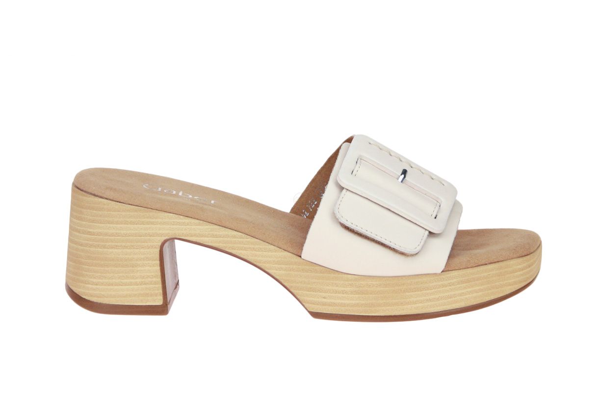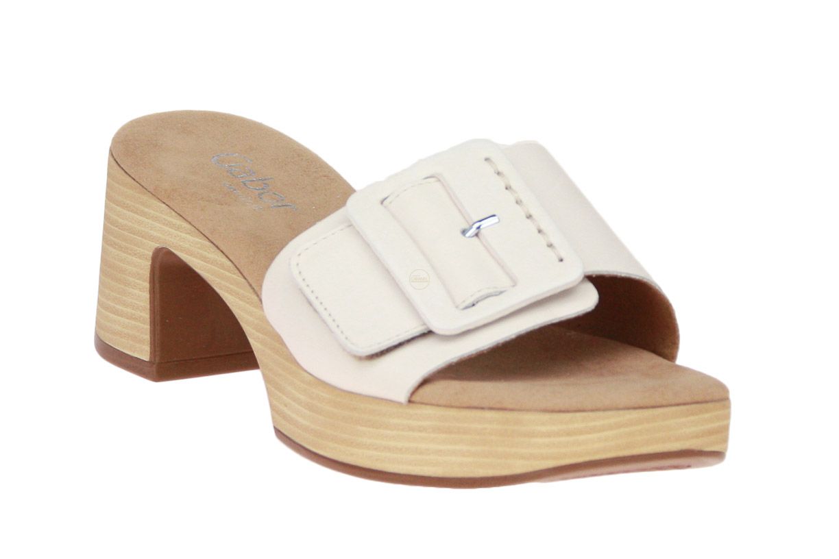 Beige lederen damesslipper van het merk Gabor.