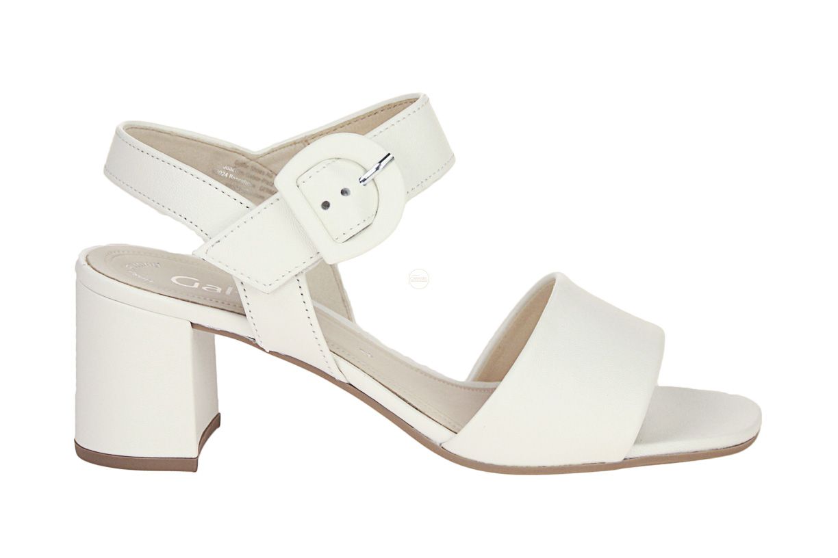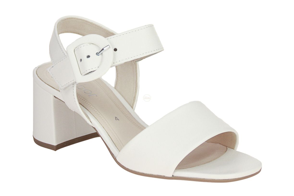 Deze wit lederen damessandaal is van het merk Gabor.
