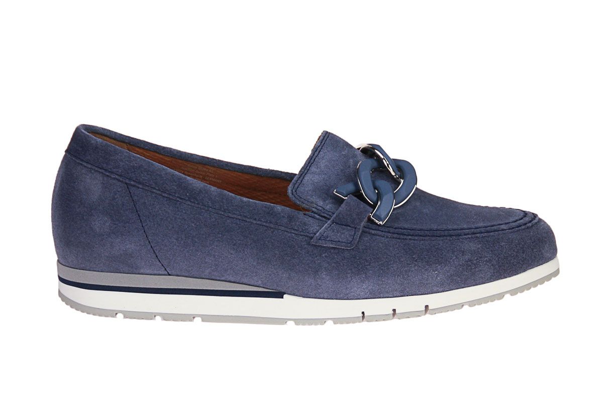 Deze blauw suède damesschoen is van het merk Gabor. De binnenzool is uitneembaar, ideaal voor steunzolen.