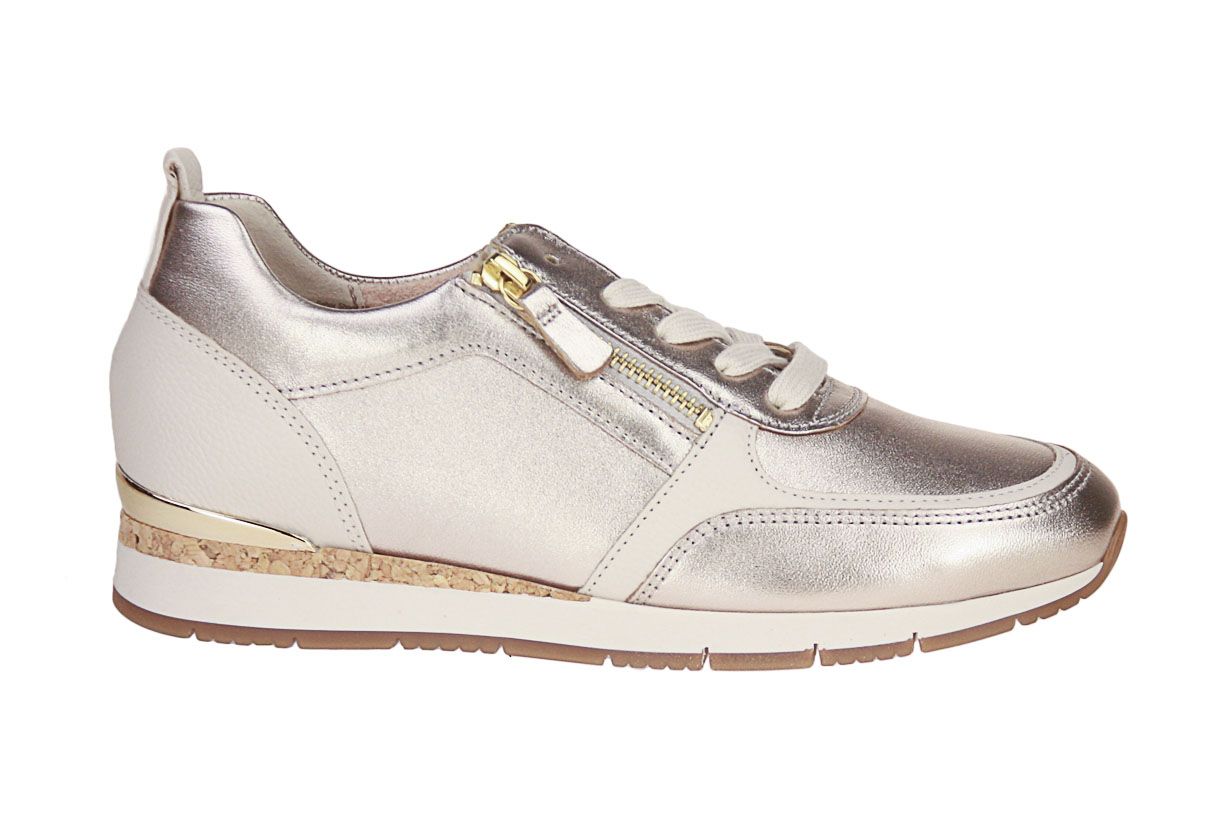 Deze goud lederen damesschoen is van het merk Gabor. De binnenzool is uitneembaar, ideaal voor steunzolen.